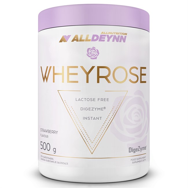 ALLDEYNN WHEYROSE je plnohodnotný proteinový nápoj s přídavkem trávicích enzymů značkové formule Digezyme®. Proteinový doplněk je založen na Whey Protein Concentrate – koncentrátu syrovátkového proteinu bez laktózy.