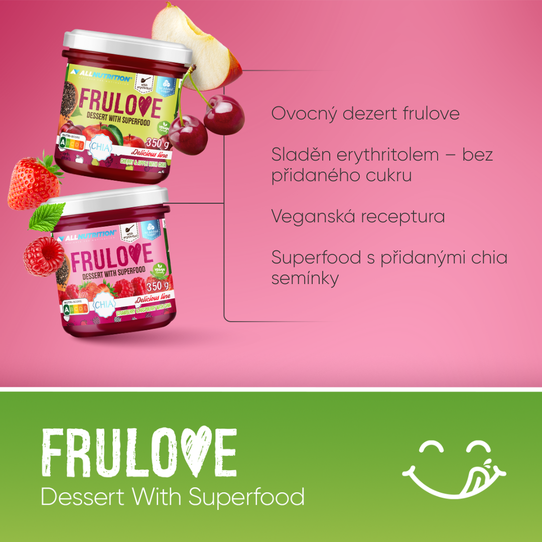 Když se jemný požitek z chuti setká s nutričními hodnotami, vznikne mimořádný dezert ALLNUTRITION FRULOVE DESSERT WITH SUPERFOODS! Naše ovocná pochoutka s chia semínky je skutečnou pastvou pro smysly a perfektní volbou pro ty, kteří touží po troše zdravého potěšení. FRULOVE DESSERT WITH SUPERFOODS je bez přidaného cukru a je vhodný pro vegany.