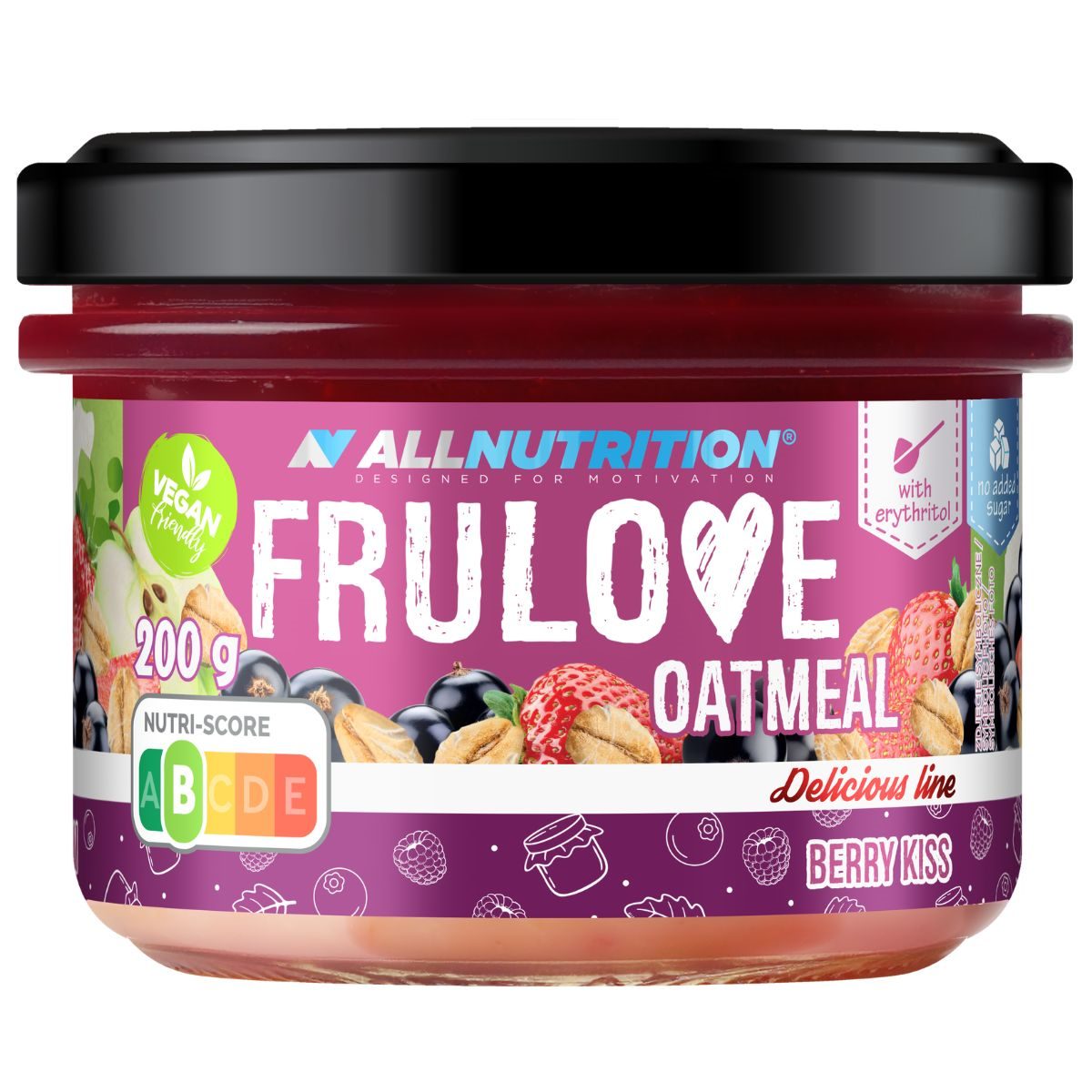 voda, černý rybíz (9,5 %), ovesné vločky (7 %), jahoda (6,3 %), jablečný koncentrát (4,3 %), sladidlo: erytritol, řepkový olej, rýžový škrob, aroma, koncentrát šťávy z černé mrkve, regulátor kyselosti: kyselina citronová, sladidlo: sukralóza