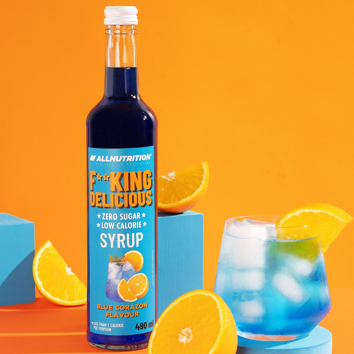 voda, regulátor kyselosti: kyselina citronová, aroma, zahušťovadlo: celulózová guma, sladidlo: sukralóza, konzervační látky: sorban draselný, benzoan sodný, barvivo: brilantní modř fcf