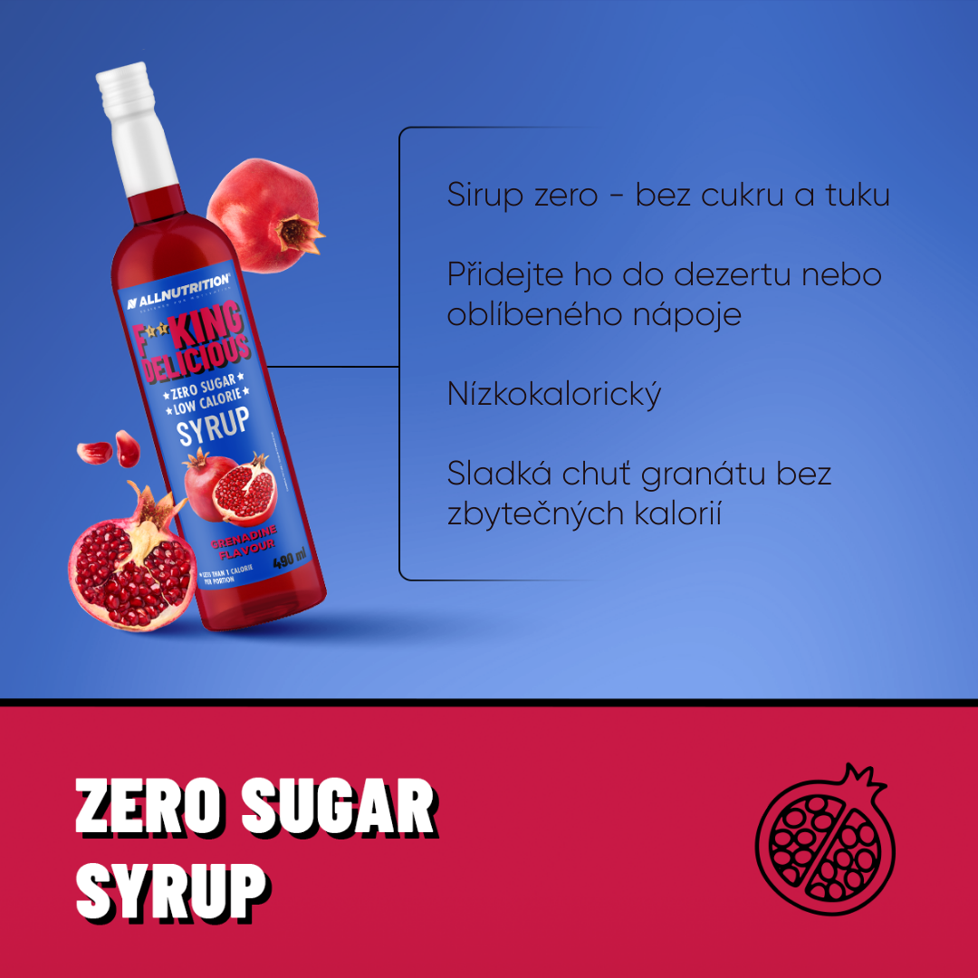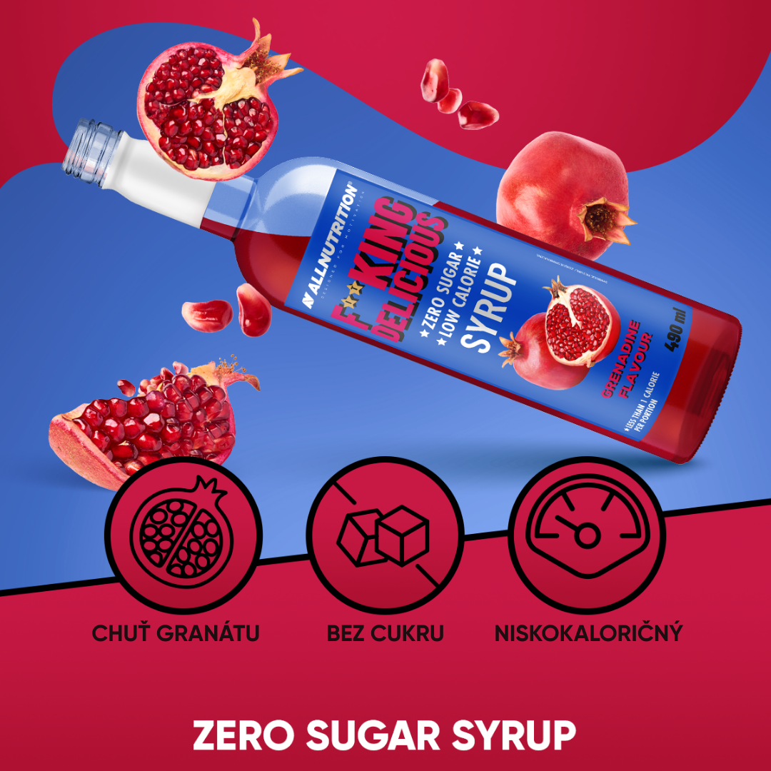 voda, regulátor kyselosti: kyselina citronová, zahušťovadlo: celulózová guma, koncentrovaná šťáva z granátového jablka (0,1 %), sladidlo: sukralóza, aroma, barvivo: azorubin, konzervační látky: sorban draselný, benzoan sodný