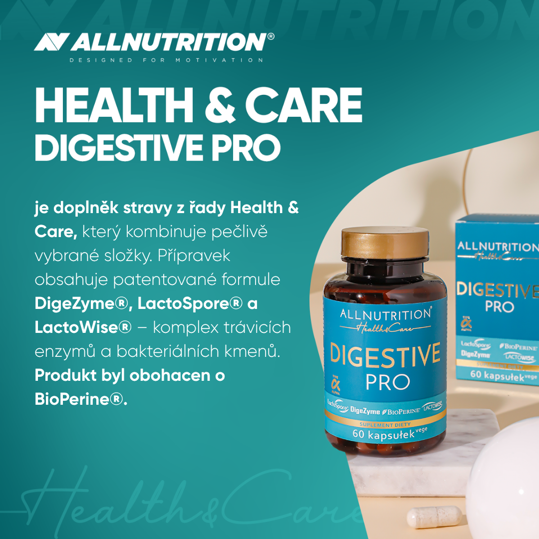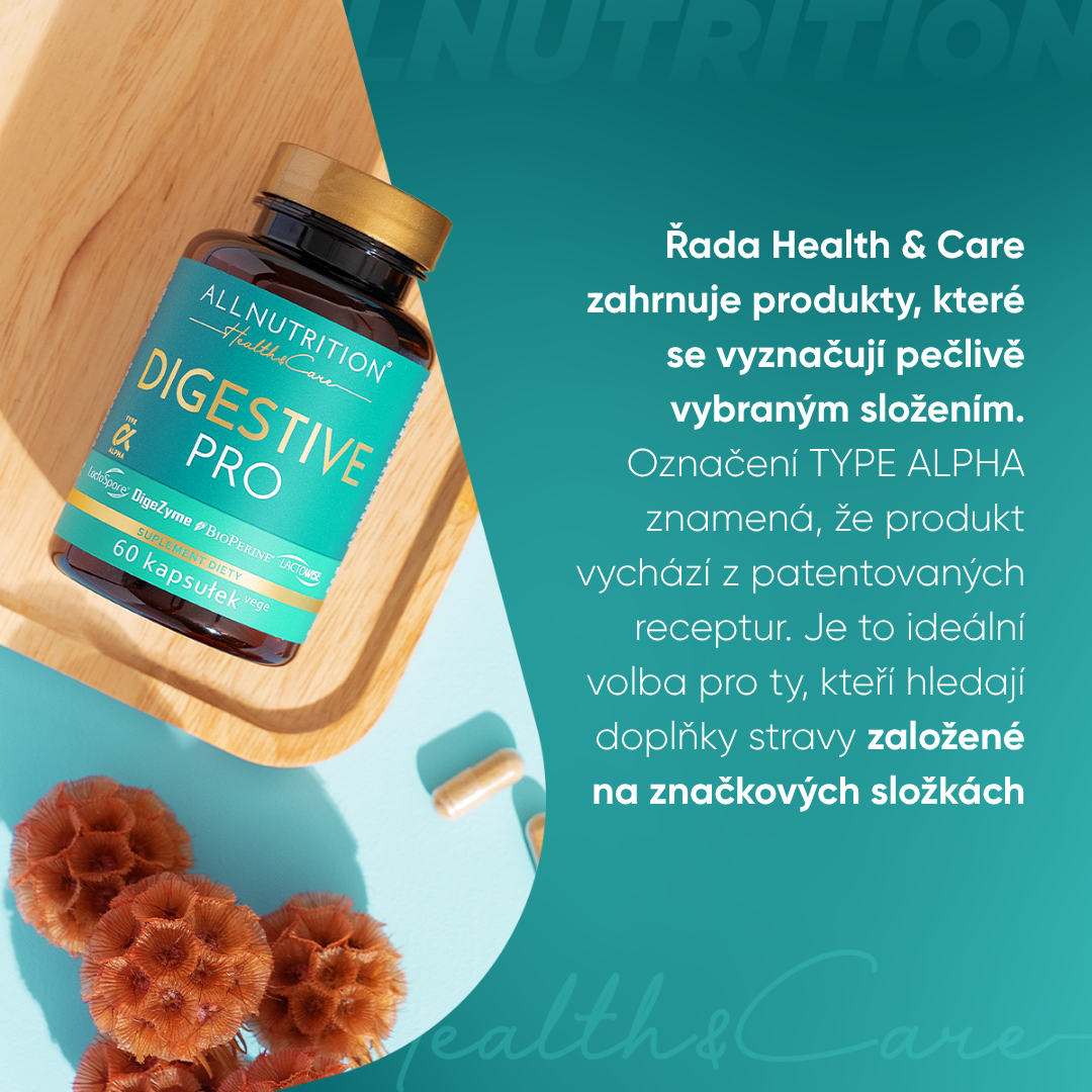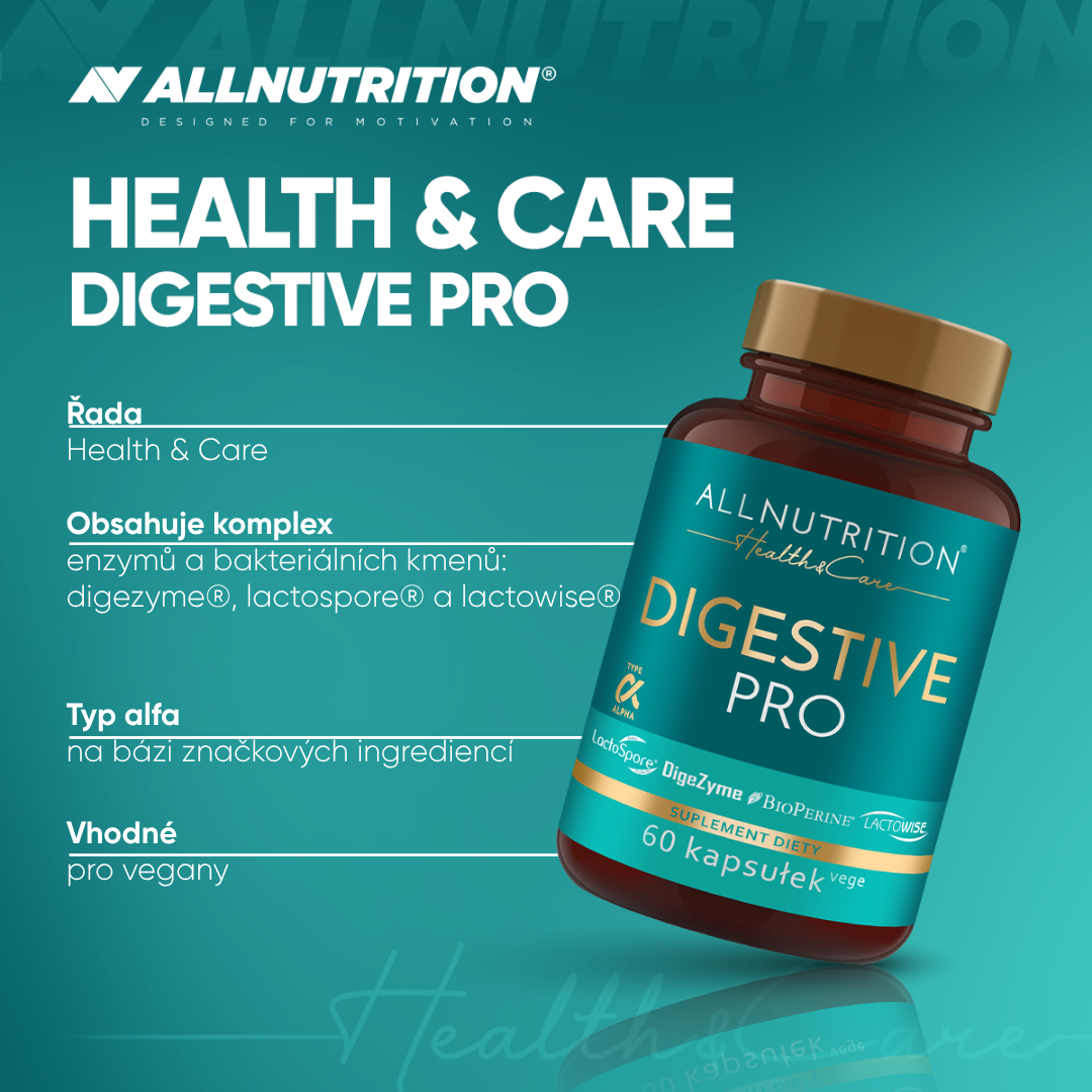 enzymatický komplex digezyme® [α-amyláza (z aspergillus oryzae), neutrální proteáza (z bacillus subtilis), celuláza (z trichoderma longibrachiatum), laktáza (z aspergillus oryzae), lipáza (z rhizopus oryzae)], betain hydrochlorid, obal tobolky (hydroxypropylmethylcelulóza), probiotický komplex lactospore®, lactowise® probiotický a prebiotický komplex, papain, bromelain, beta-1,3/1,6-d glukan z pivovarských kvasinek saccharomyces cerevisiae, protispékavá látka: hořečnaté soli mastných kyselin, bioperine® piper nigrum ovocný extrakt z černého pepře, protispékavá látka: oxid křemičitý