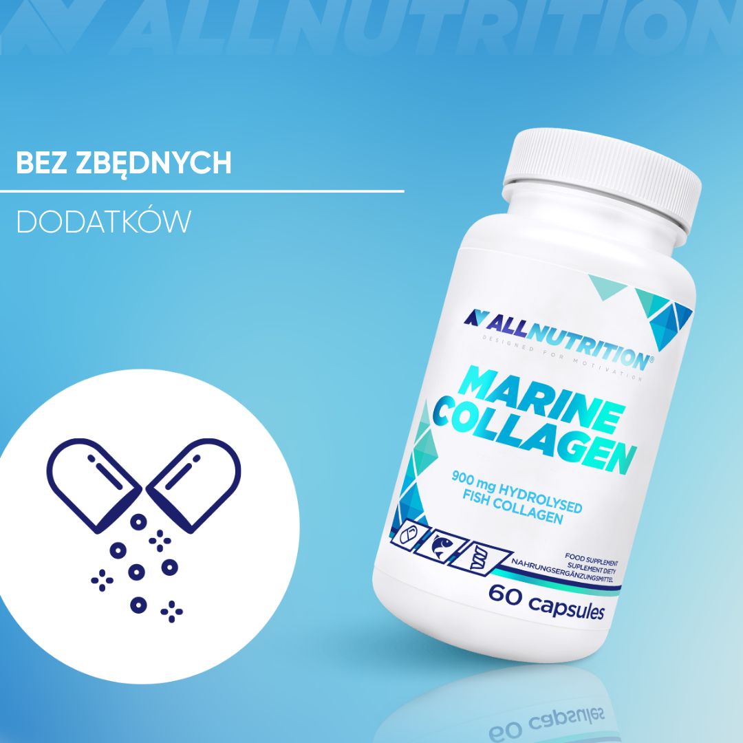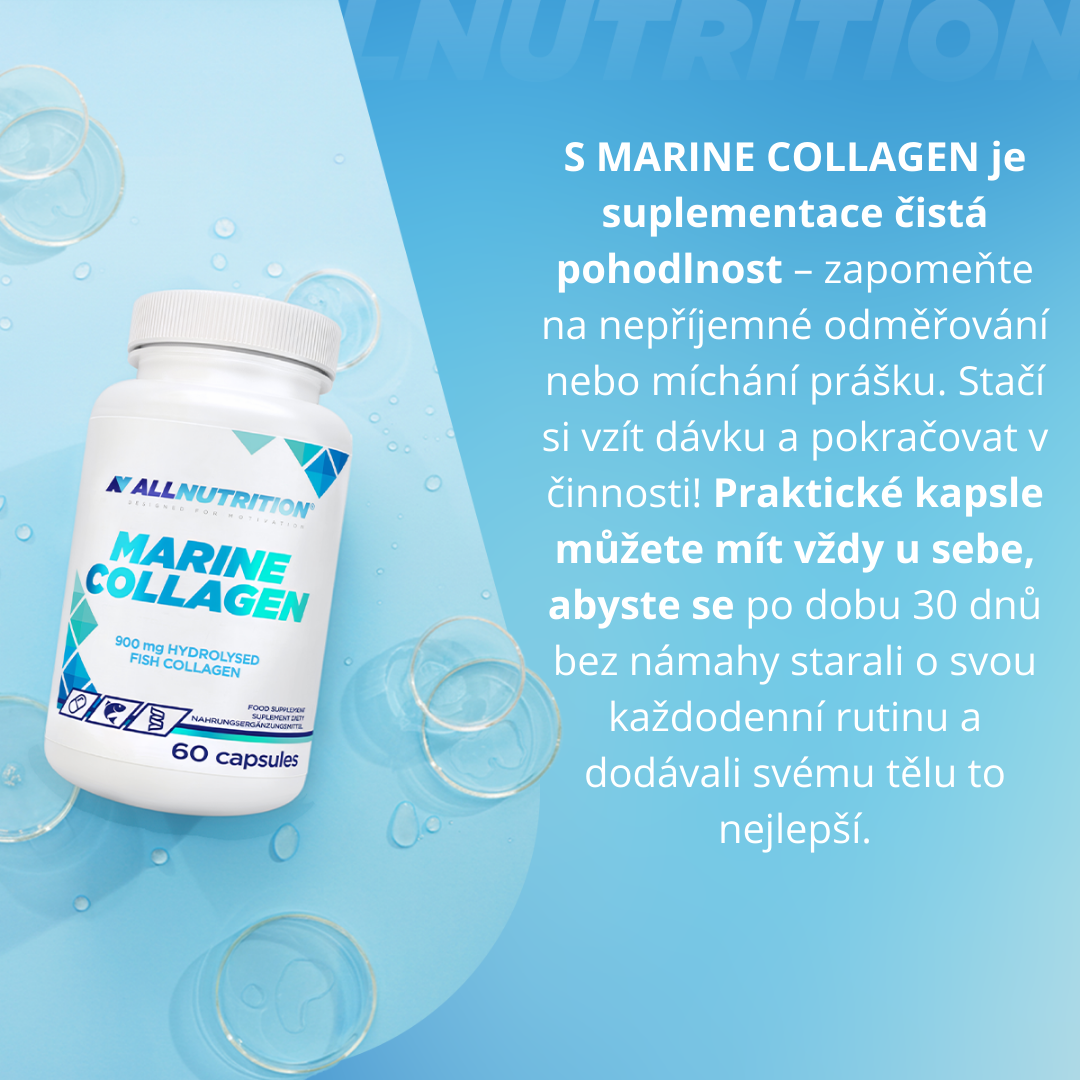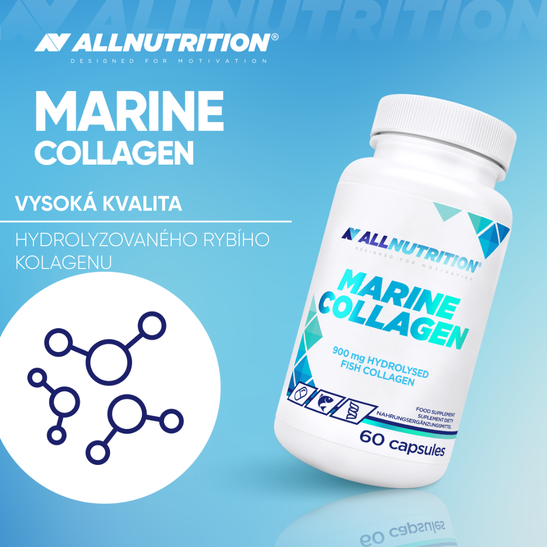 ALLNUTRITION MARINE COLLAGEN je doplněk stravy ve formě snadno polykatelných kapslí, který dodává vysoce kvalitní hydrolyzovaný rybí kolagen. Představuje skvělé doplnění každodenní stravy pro osoby, které o sebe chtějí pečovat zevnitř a vedou aktivní životní styl. Pokud sníš o účinné podpoře svého organismu, tento produkt je pro tebe ideální volbou! Užij si jednoduchou suplementaci bez zbytečných přísad.