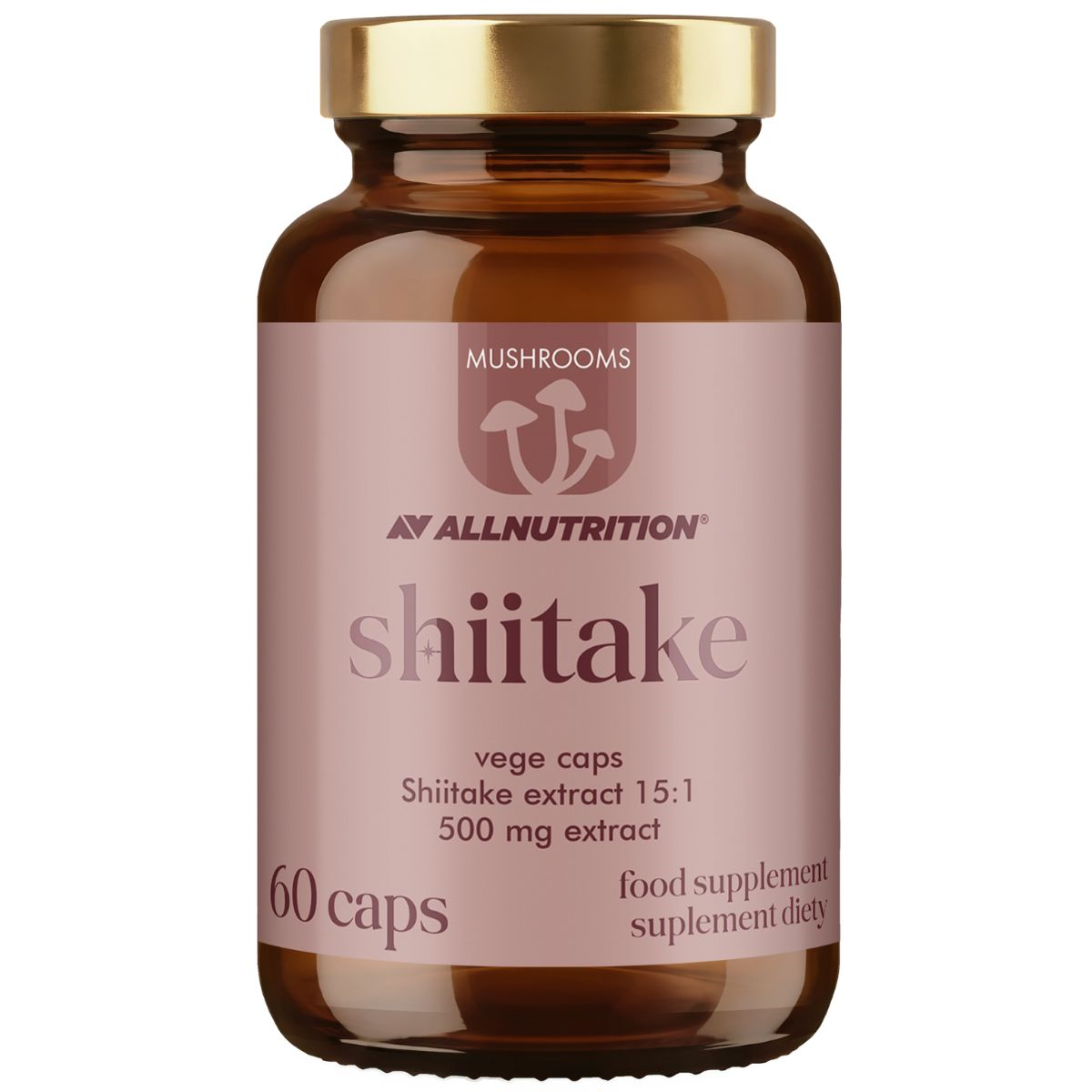 ALLNUTRITION MUSHROOMS SHIITAKE je doplněk stravy ve formě veganských kapslí, dodávající extrakt z plodnic houževnatce jedlého (Lentinula edodes). Produkt patří do speciální řady MUSHROOMS a byl vytvořen pro osoby, které chtějí obohatit svou stravu o koncentrované extrakty z hub. Jedno balení představuje dva měsíce pravidelného užívání.
