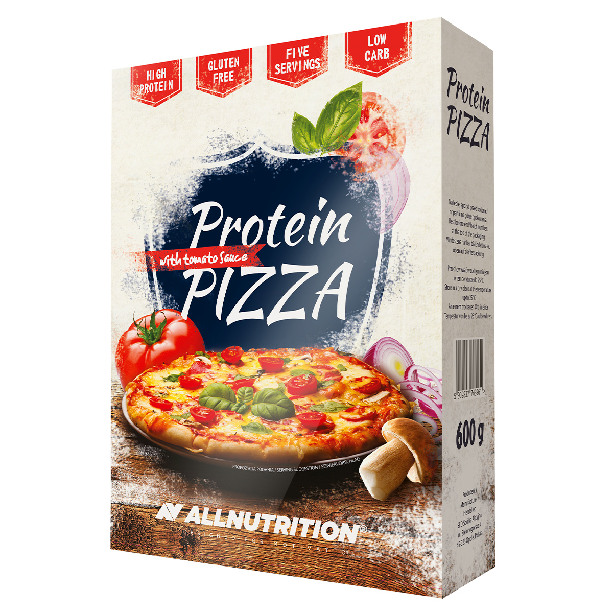 koláč: syrovátkový proteinový koncentrát [z mléka]., sójový proteinový izolát, kaseinát vápenatý [z mléka], bramborový škrob, bramborová vláknina, prášek ze slepičích vajec, prášek z vaječného bílku, kvasnicový extrakt, bylinky z provence, paprikový extrakt, sůl, kypřící látky: difosforečnan sodný, uhličitan sodný, zahušťovadlo: hydroxypropylmethylcelulóza, rajčatová omáčka: rajčatový prášek, kvasnicový extrakt, sójový proteinový koncentrát, paprikový extrakt.