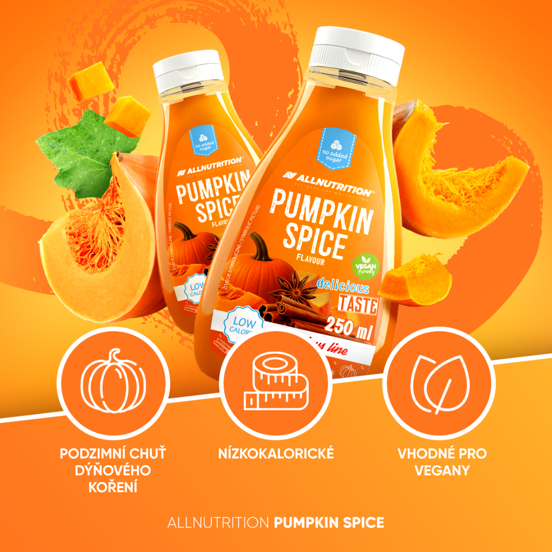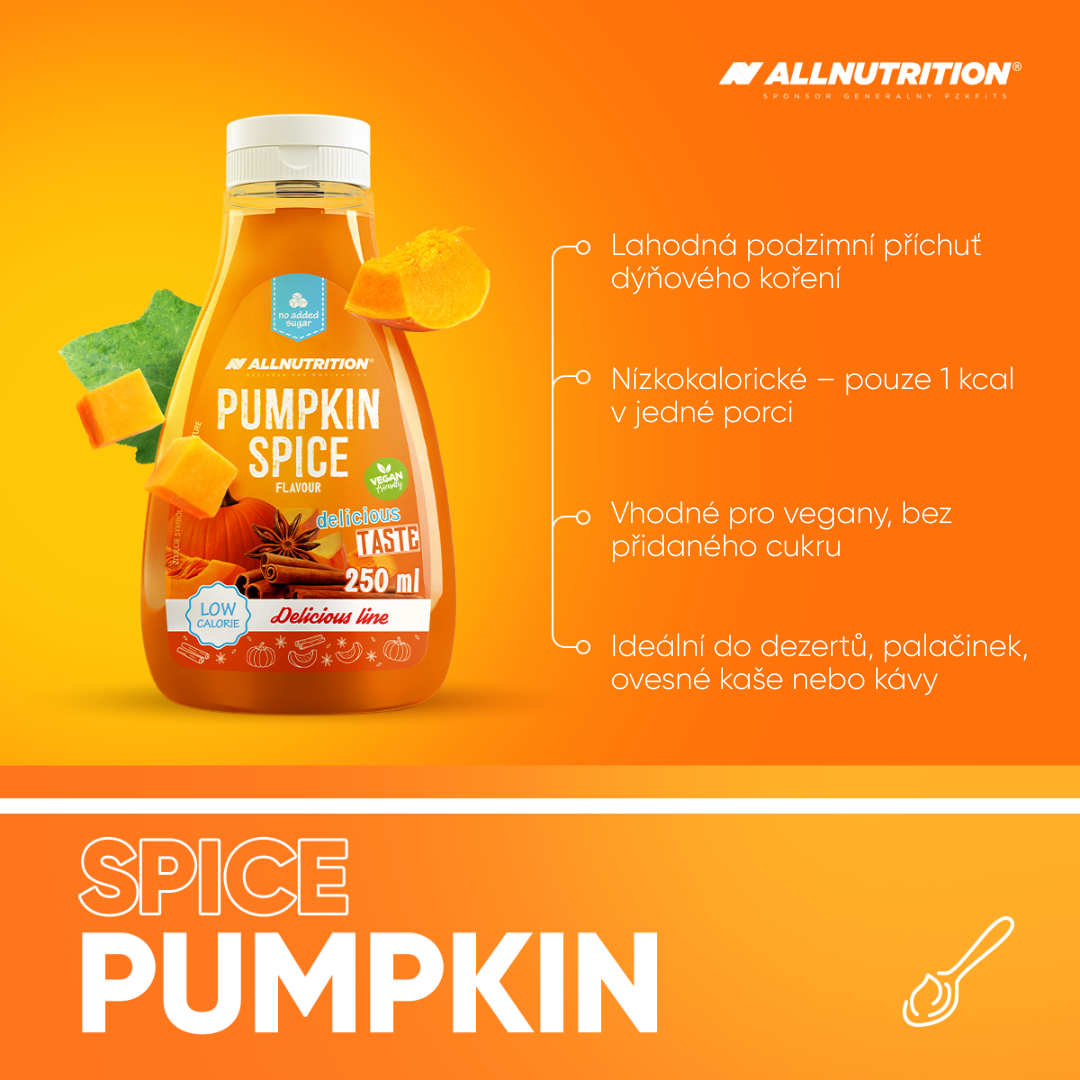 Prožij teplo a vůni podzimu! ALLNUTRITION SAUCE PUMPKIN SPICE je chutná, aromatická omáčka s dýňovou příchutí a nádechem koření. Vytvořena pro ty, kteří si chtějí užít kouzelnou podzimní atmosféru bez výčitek.