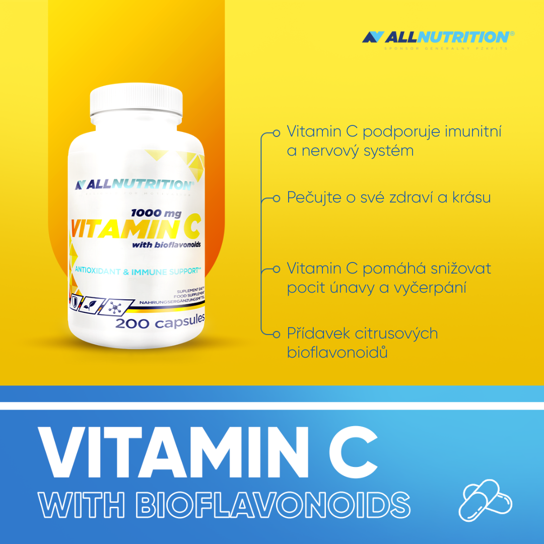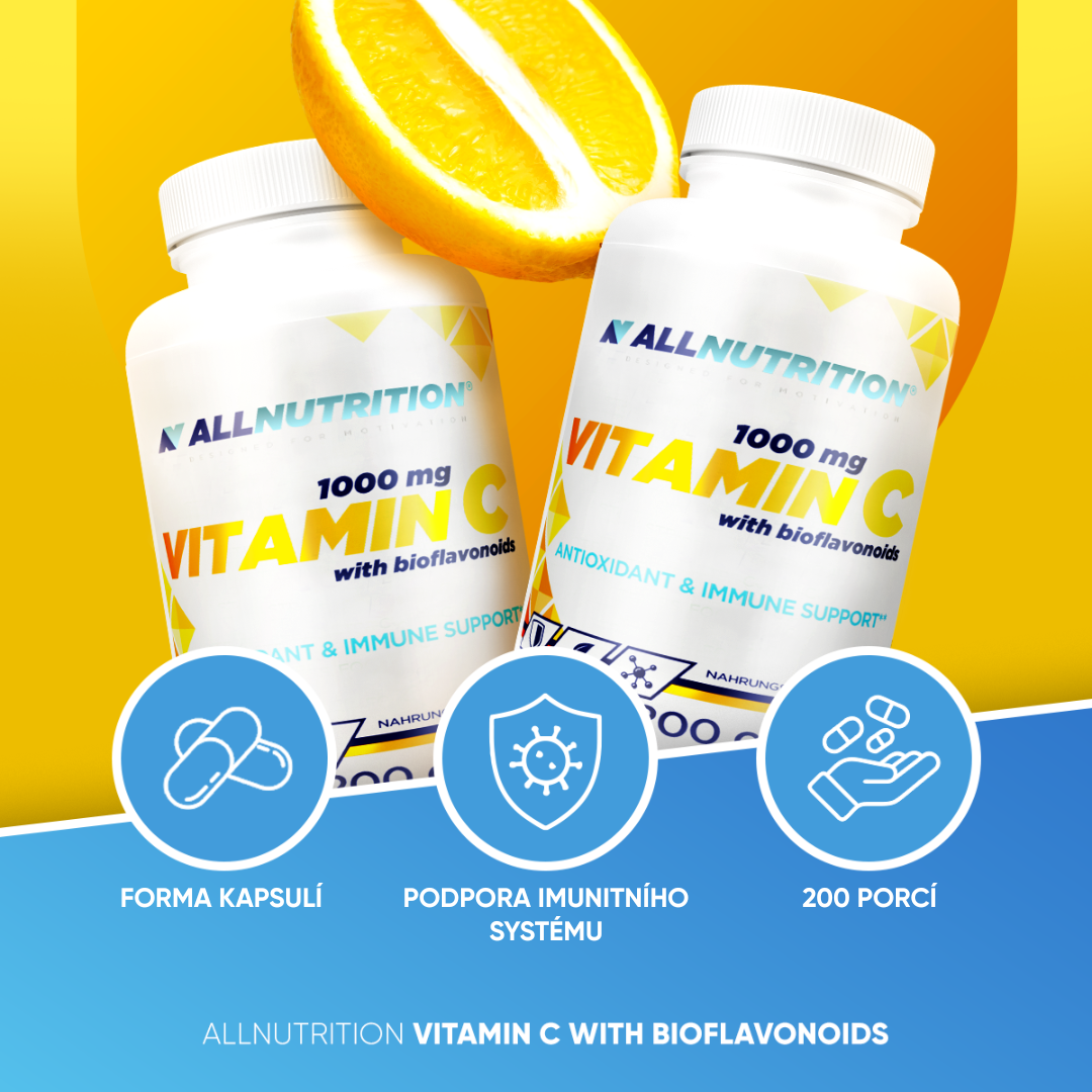 ALLNUTRITION VITAMIN C WITH BIOFLAVONOIDSje výrobek určen pro doplnění nedostatků vitaminu C a zlepšení fungování imunitní soustavy. Z důvodu vysokého obsahu vitaminu C a bioflavonoidů, dvou silných antioxidantů výrobek přispívá k ochraně buněk organismu proti oxidačnímu stresu.