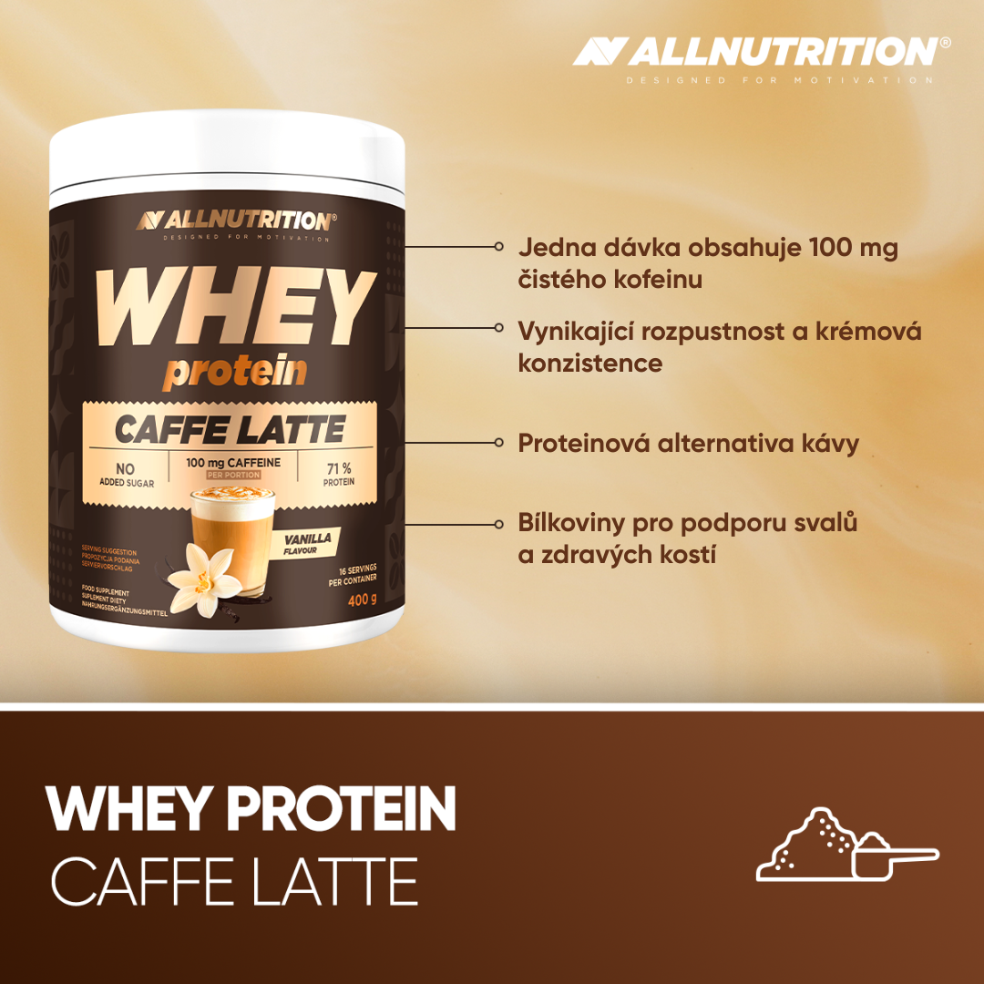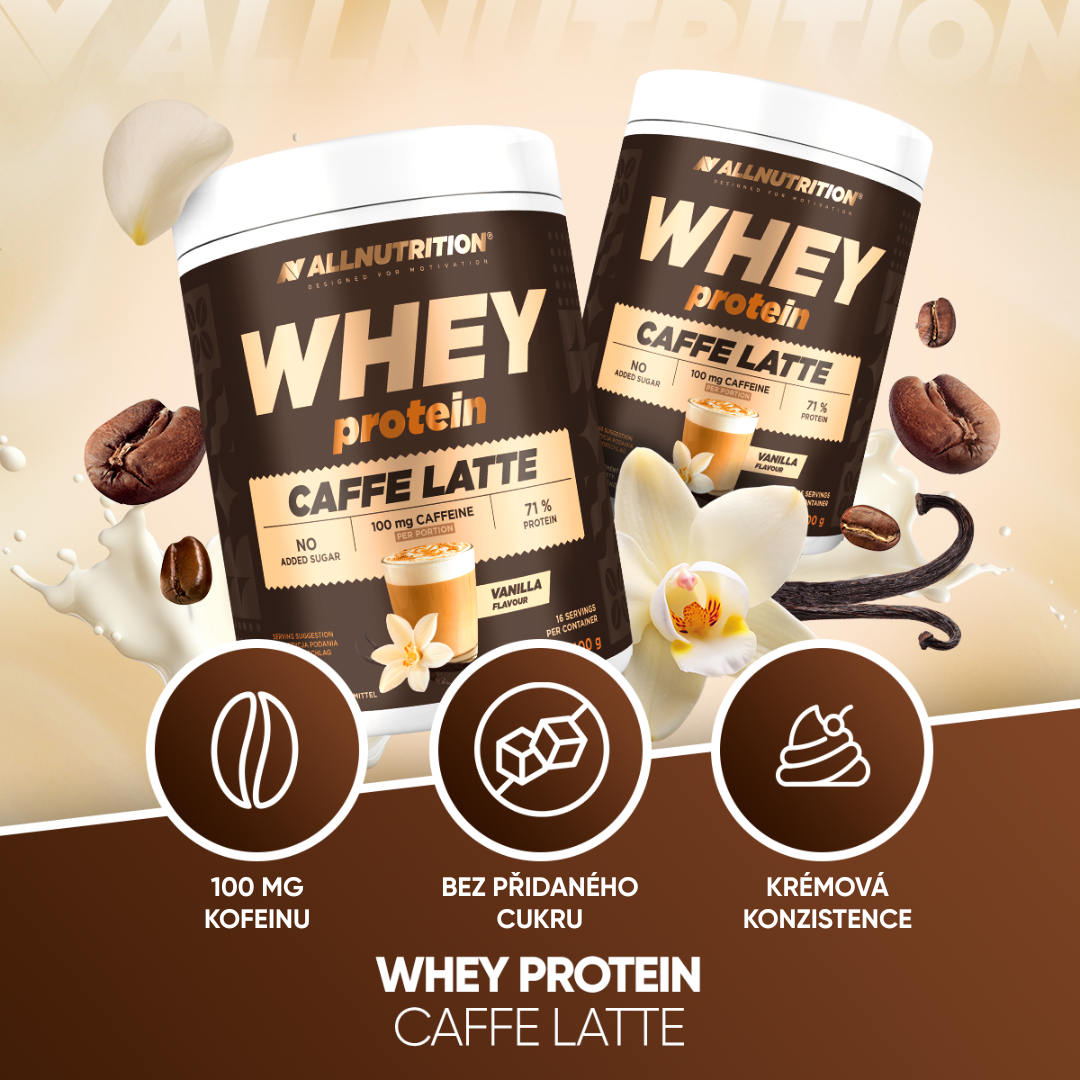 syrovátkový proteinový koncentrát (90 %) [z mléka], instantní káva (7,5%), příchutě, bezvodý kofein (0,25%), emulgátor: lecitiny, sladidlo: steviol-glykosidy ze stévie