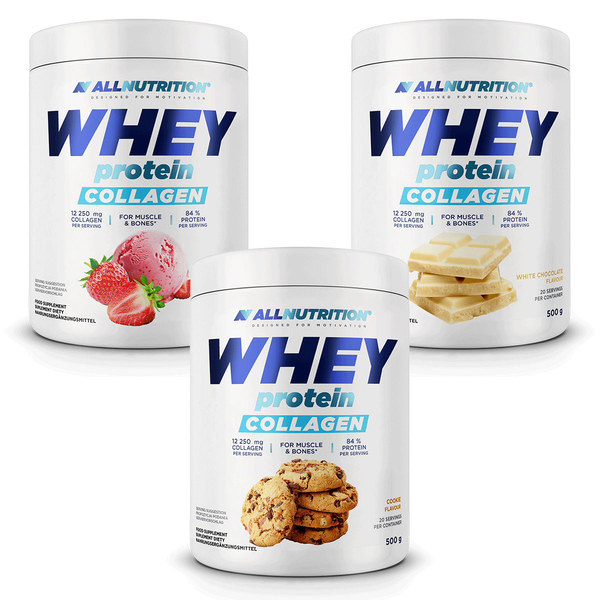 ALLNUTRITION WHEY PROTEIN COLLAGEN je nejprodávanější proteinový doplněk WPC v nové verzi - obohacený o hovězí kolagenní peptidy. Je nejen vynikající podporou při budování silných a větších svalů, ale také prostředkem komplexní regenerace organismu a zdravých kostí.