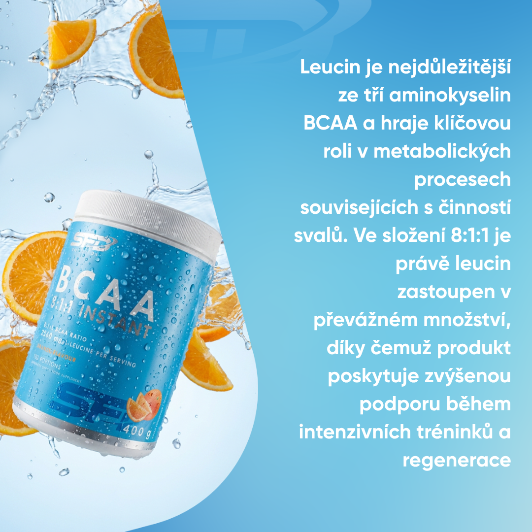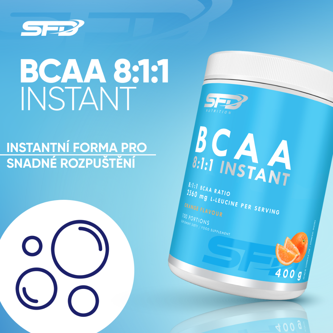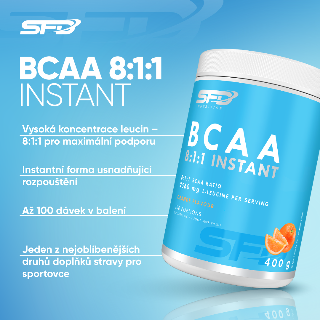 SFD BCAA 8:1:1 je komplex rozvětvených aminokyselin v poměru 8:1:1 (l-leucin : l-valin : l-izoleucin), vytvořený pro intenzivně trénující sportovce a fyzicky aktivní osoby. Dominantní dávka leucinu – klíčové aminokyseliny ze skupiny BCAA – podporuje organismus jak během tréninku, tak i ve fázi regenerace.