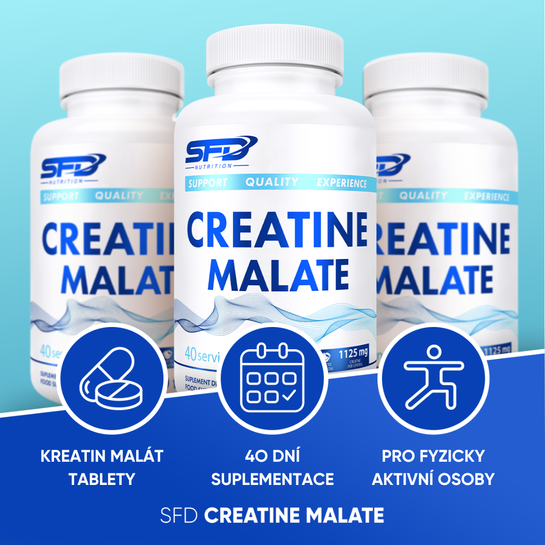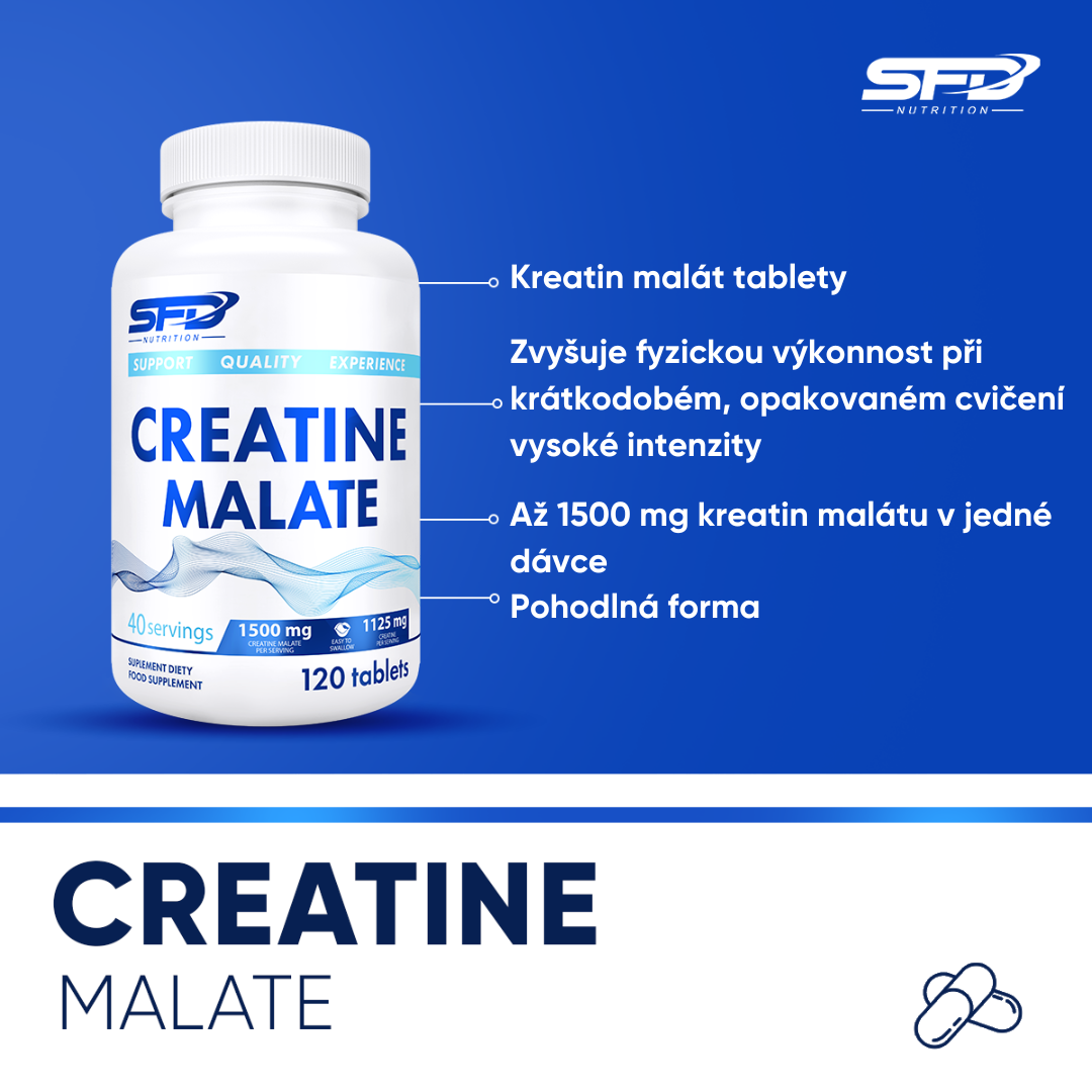 kreatin malát, plnidlo: mikrokrystalická celulóza, škrob, protispékavé látky: oxid křemičitý, hořečnaté soli mastných kyselin